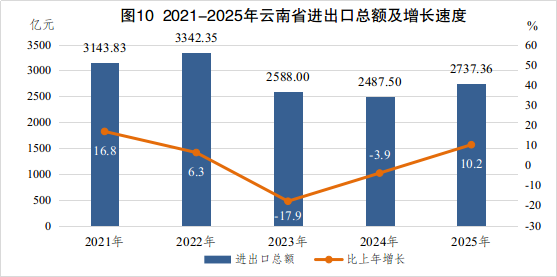 [1] 公报中各项数据为初步统计数据,最终数据请以对应部门公布数据为准。部分数据因四舍五入原因,存在总计与分项合计不等的情况。根据云南省第五次全国经济普查结果,对地区生产总值、全员劳动生产率、社会消费品零售总额等历史数据(图1、图2、图9)进行了修订。其中,2021—2023年地区生产总值、全员劳动生产率为云南省第五次全国经济普查修订数,2024年为最终核实数,2025年为初步核算数。